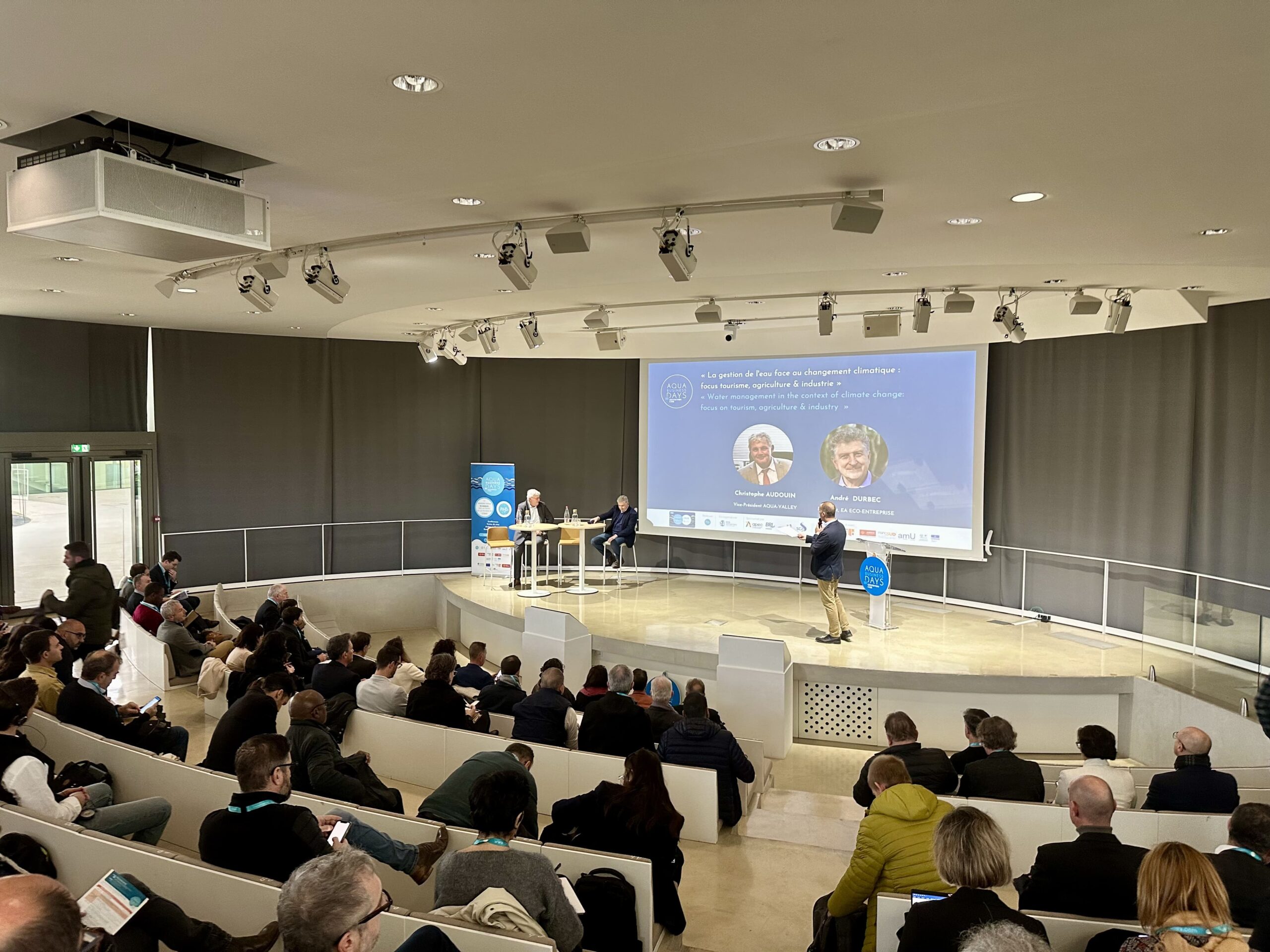 Vendredi 13 décembre 2024 • La 4ème édition des Aqua Business Days a rassemblé les 11 et 12 décembre 210 participants issus des secteurs public et privé. Acteurs économiques, de l’aménagement du territoire, de l’enseignement supérieur et de la recherche ont pu profiter de conférences d’experts, d’ateliers participatifs, de visites de sites… Des rencontres riches qui ont mobilisé la communauté des professionnels de l’eau autour de l’adaptation des secteurs de l’agriculture, du tourisme et de l’industrie au changement climatique.